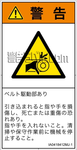 危険の種類: 機械的な危険 引き込み(ベルト)