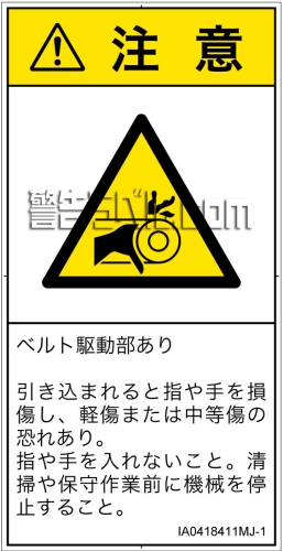 危険の種類: 機械的な危険 引き込み(ベルト)