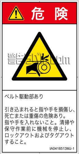 危険の種類: 機械的な危険 引き込み(ベルト)