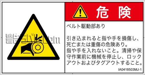 危険の種類: 機械的な危険 引き込み(ベルト)
