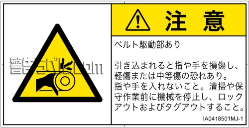 危険の種類: 機械的な危険 引き込み(ベルト)