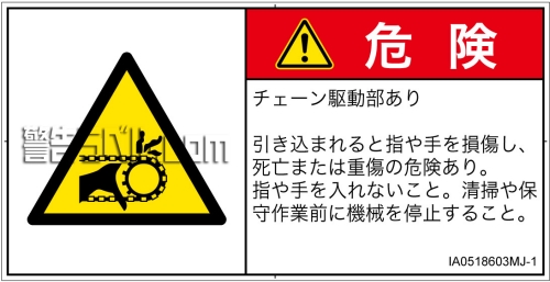 危険の種類: 機械的な危険 引き込み(チェーン)