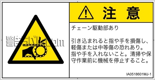 危険の種類: 機械的な危険 引き込み(チェーン)