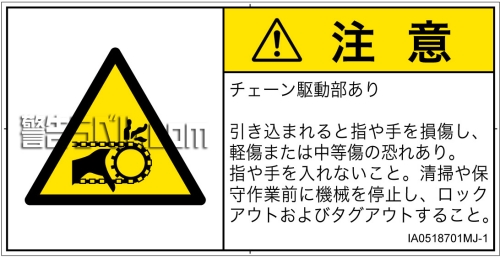 危険の種類: 機械的な危険 引き込み(チェーン)