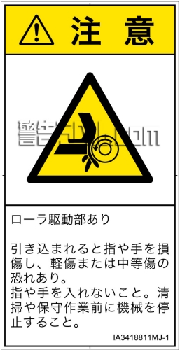 危険の種類: 機械的な危険  引き込み(ローラ)