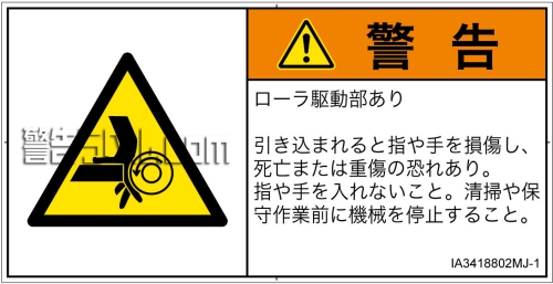 危険の種類: 機械的な危険  引き込み(ローラ)