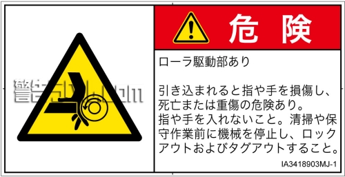 危険の種類: 機械的な危険  引き込み(ローラ)