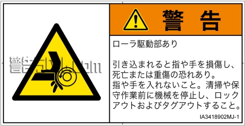 危険の種類: 機械的な危険  引き込み(ローラ)