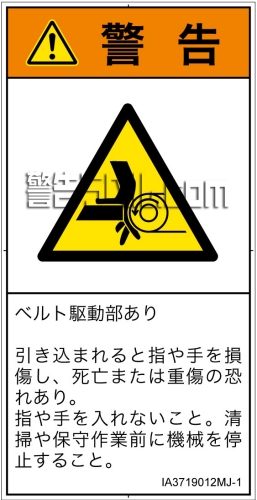 危険の種類: 機械的な危険  引き込み(ベルト)