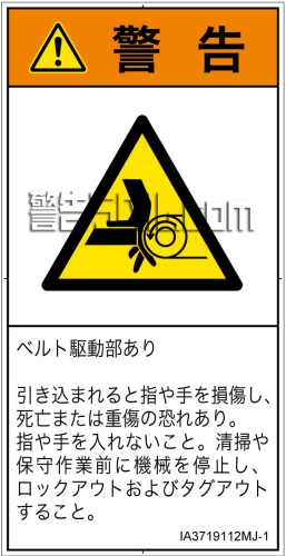 危険の種類: 機械的な危険  引き込み(ベルト)