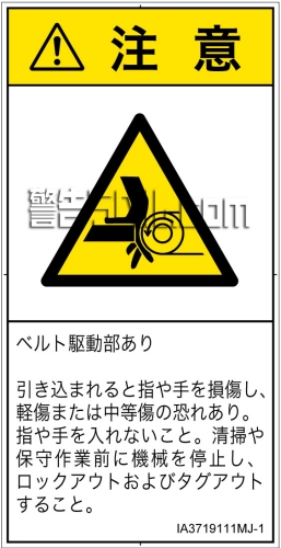 危険の種類: 機械的な危険  引き込み(ベルト)