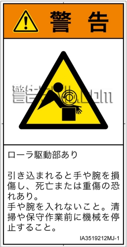 危険の種類: 機械的な危険  引き込み(ローラ)