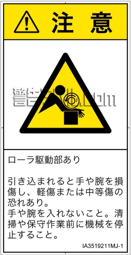 危険の種類: 機械的な危険  引き込み(ローラ)