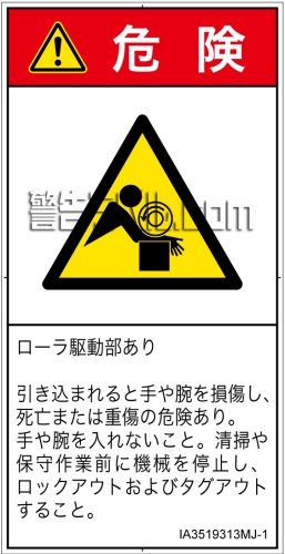 危険の種類: 機械的な危険  引き込み(ローラ)