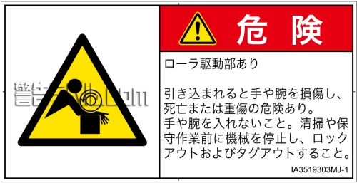 危険の種類: 機械的な危険  引き込み(ローラ)