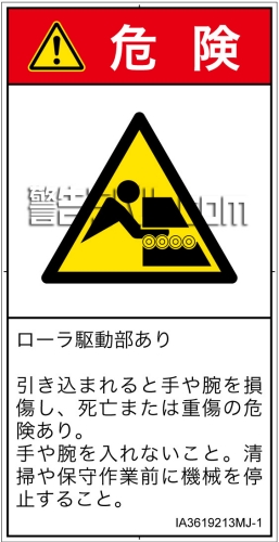 危険の種類: 機械的な危険  引き込み(ローラ)