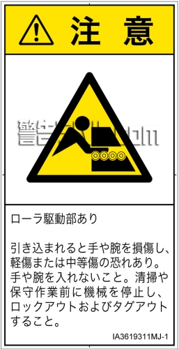 危険の種類: 機械的な危険  引き込み(ローラ)