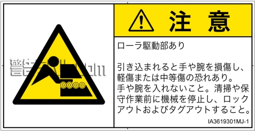 危険の種類: 機械的な危険  引き込み(ローラ)