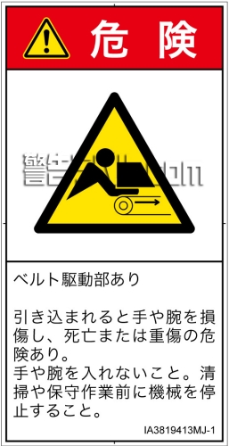危険の種類: 機械的な危険  引き込み(ベルト)