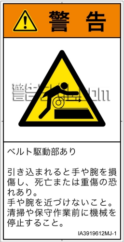 危険の種類: 機械的な危険  引き込み(ベルト)