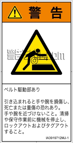 危険の種類: 機械的な危険  引き込み(ベルト)