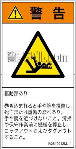 巻き込まれると手や腕を損傷し、死亡または重傷の恐れあり。