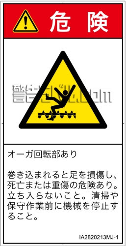 巻き込まれると足を損傷し、死亡または重傷の危険あり。