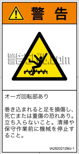 巻き込まれると足を損傷し、死亡または重傷の恐れあり。