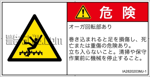 巻き込まれると足を損傷し、死亡または重傷の危険あり。