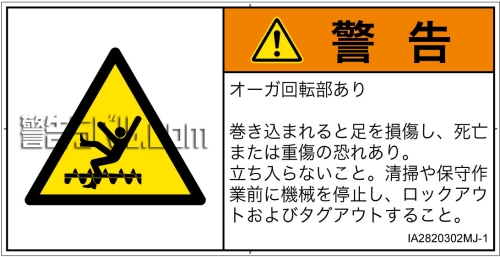 巻き込まれると足を損傷し、死亡または重傷の恐れあり。