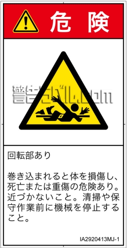 巻き込まれると体を損傷し、死亡または重傷の危険あり。