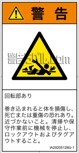 巻き込まれると体を損傷し、死亡または重傷の恐れあり。