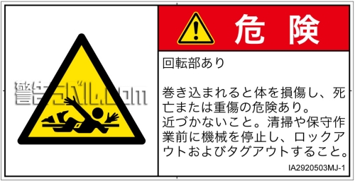 巻き込まれると体を損傷し、死亡または重傷の危険あり。