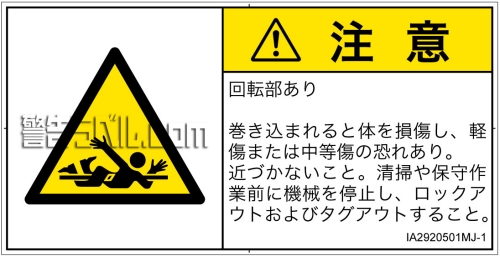 巻き込まれると体を損傷し、軽傷または中等傷の恐れあり。
