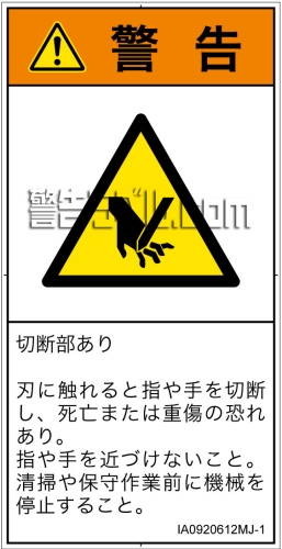 刃に触れると指や手を切断し、死亡または重傷の恐れあり。