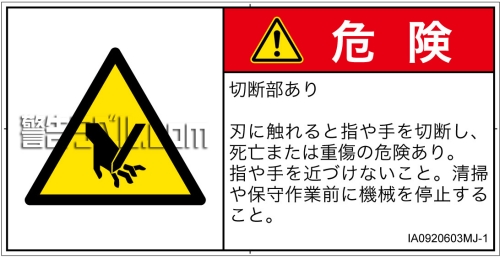 刃に触れると指や手を切断し、死亡または重傷の危険あり。