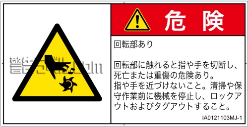 指や手を近づけないこと。清掃や保守作業前に機械を停止し、ロックアウトおよびタグアウトすること。