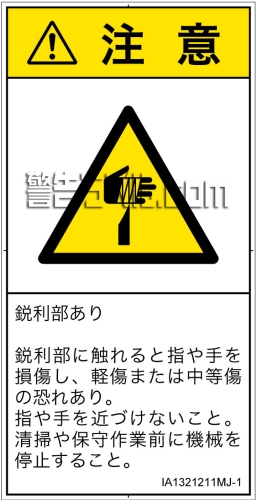 鋭利部に触れると指や手を損傷し、軽傷または中等傷の恐れあり。