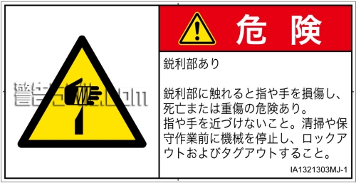 鋭利部に触れると指や手を損傷し、死亡または重傷の危険あり。