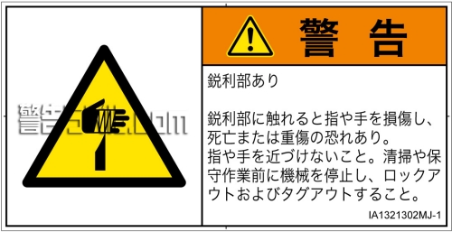 鋭利部に触れると指や手を損傷し、死亡または重傷の恐れあり。