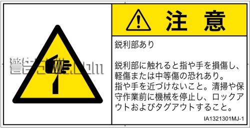 鋭利部に触れると指や手を損傷し、軽傷または中等傷の恐れあり。