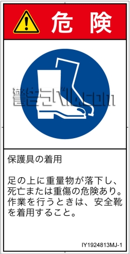 足の上に重量物が落下し、死亡または重傷の危険あり。