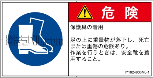 足の上に重量物が落下し、死亡または重傷の危険あり。