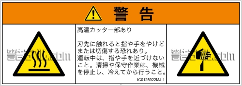 運転中は、指や手を近づけないこと。清掃や保守作業は、機械を停止し、冷えてから行うこと。
