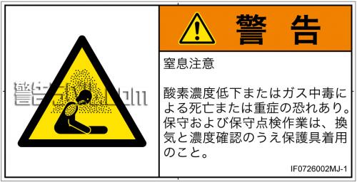 酸素濃度低下またはガス中毒による死亡または重症の恐れあり。