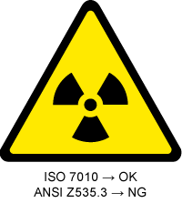 例えば、「ISO 7010:2003」で規定されている放射能に関する図記号は、「ANSI Z535.3-2007」では理解度試験に合格していない安全記号(得点50%未満)として紹介されています。