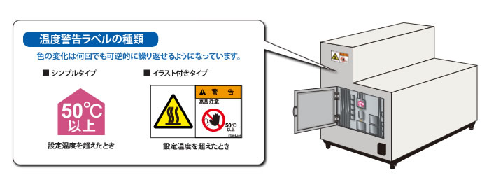 従来型の警告ラベルとは異なり、温度を色の変化で注意喚起。一歩進んだ安全対策に効果を発揮します。